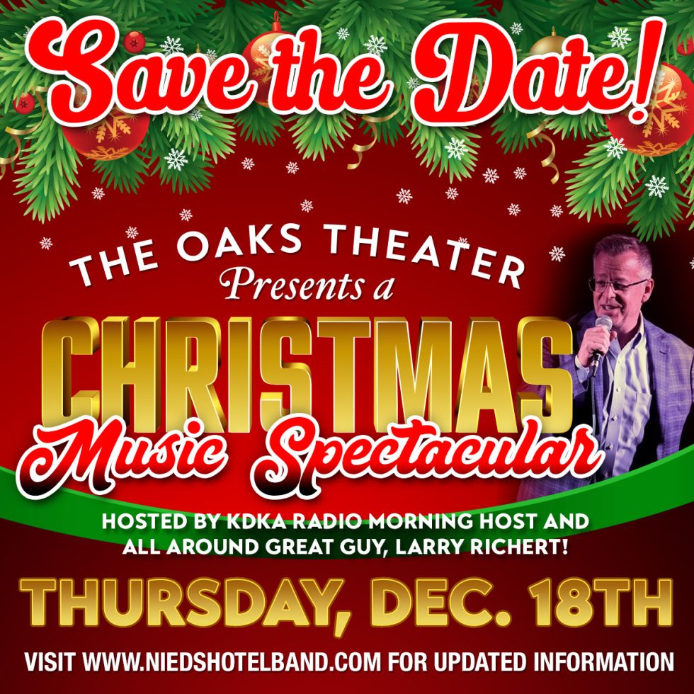 15 November Sat Casino TheaterCasino TheaterDate November 15, 2025Time 6:00 pmVenue Casino Theater VandergriftMore Info 18 December Thu The Oaks Christmas Music SpectacularThe Oaks Christmas Music SpectacularDate December 18, 2025Time 7:00 pm - 10:00 pmVenue The Oaks TheaterMore Info
